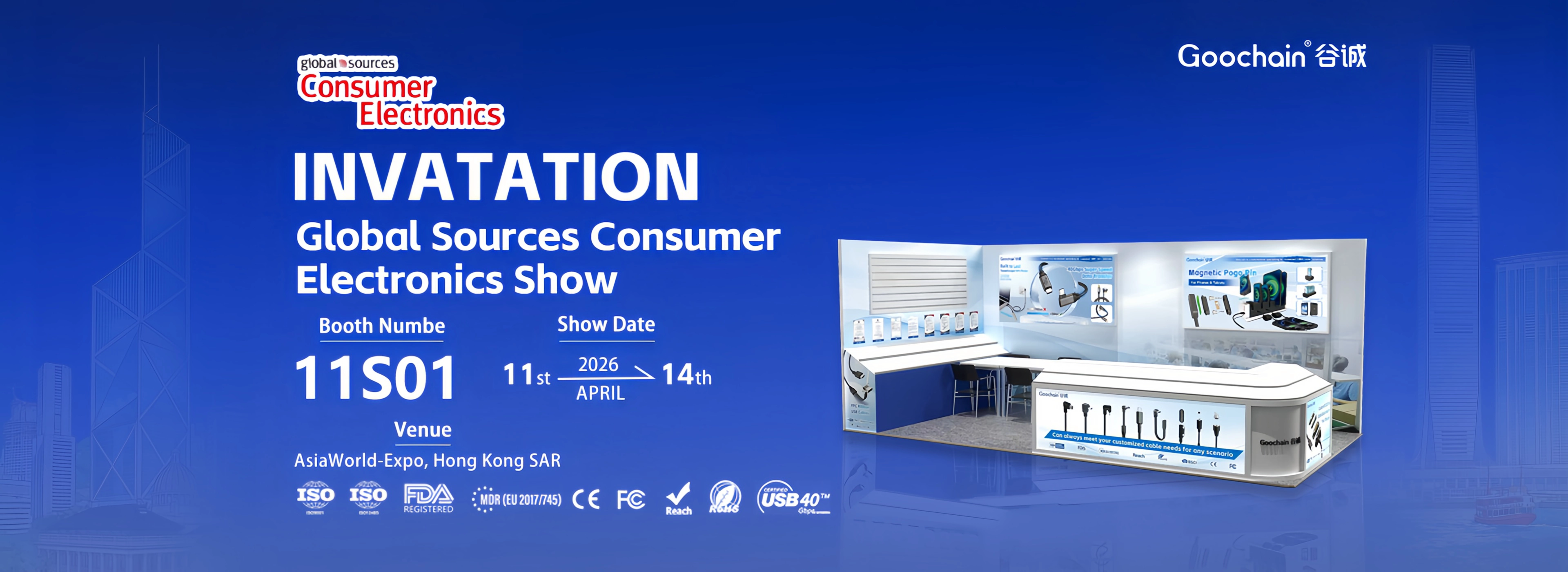 Nous vous invitons sincèrement à nous rendre visite au Global Sources HK Show 2026 et rencontrez notre équipe lors du salon à Hong Kong, Chine.