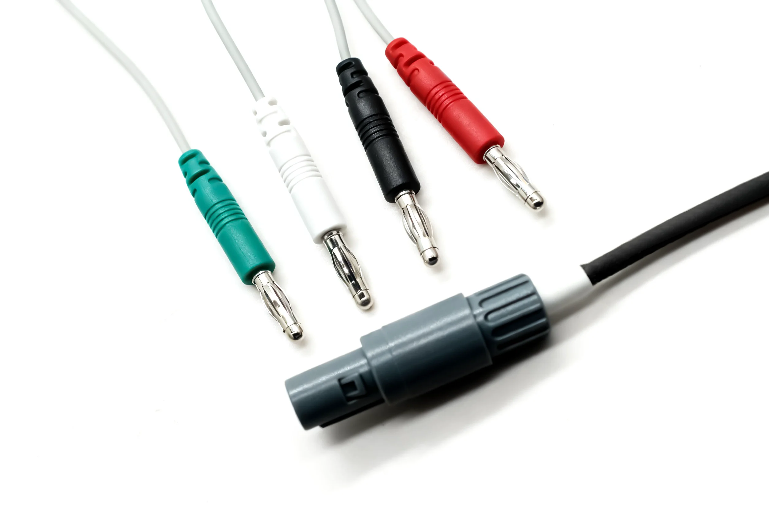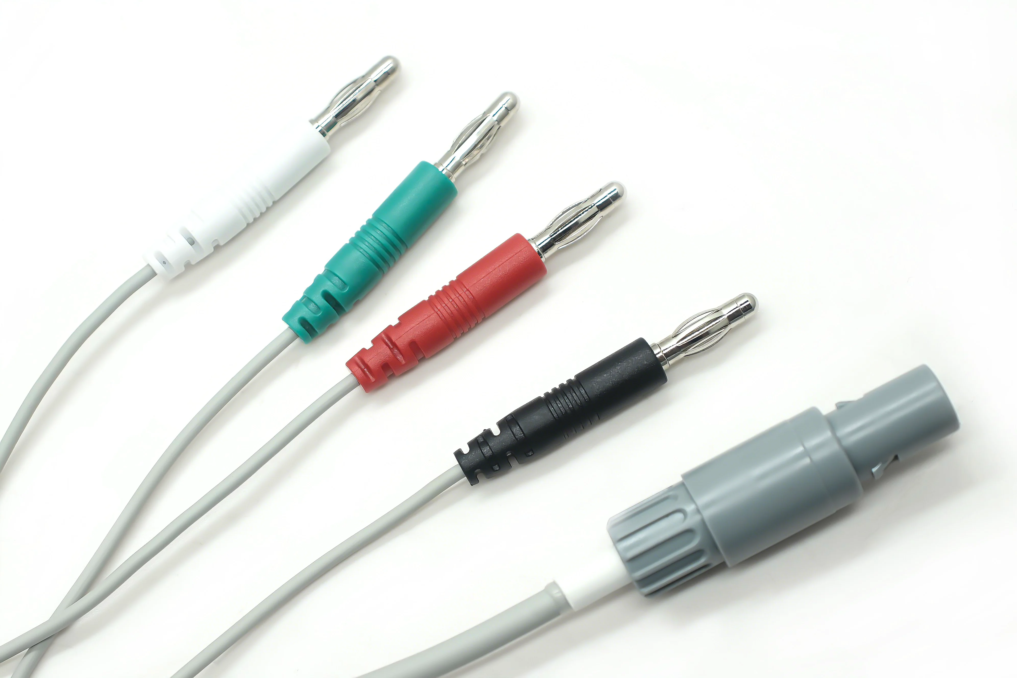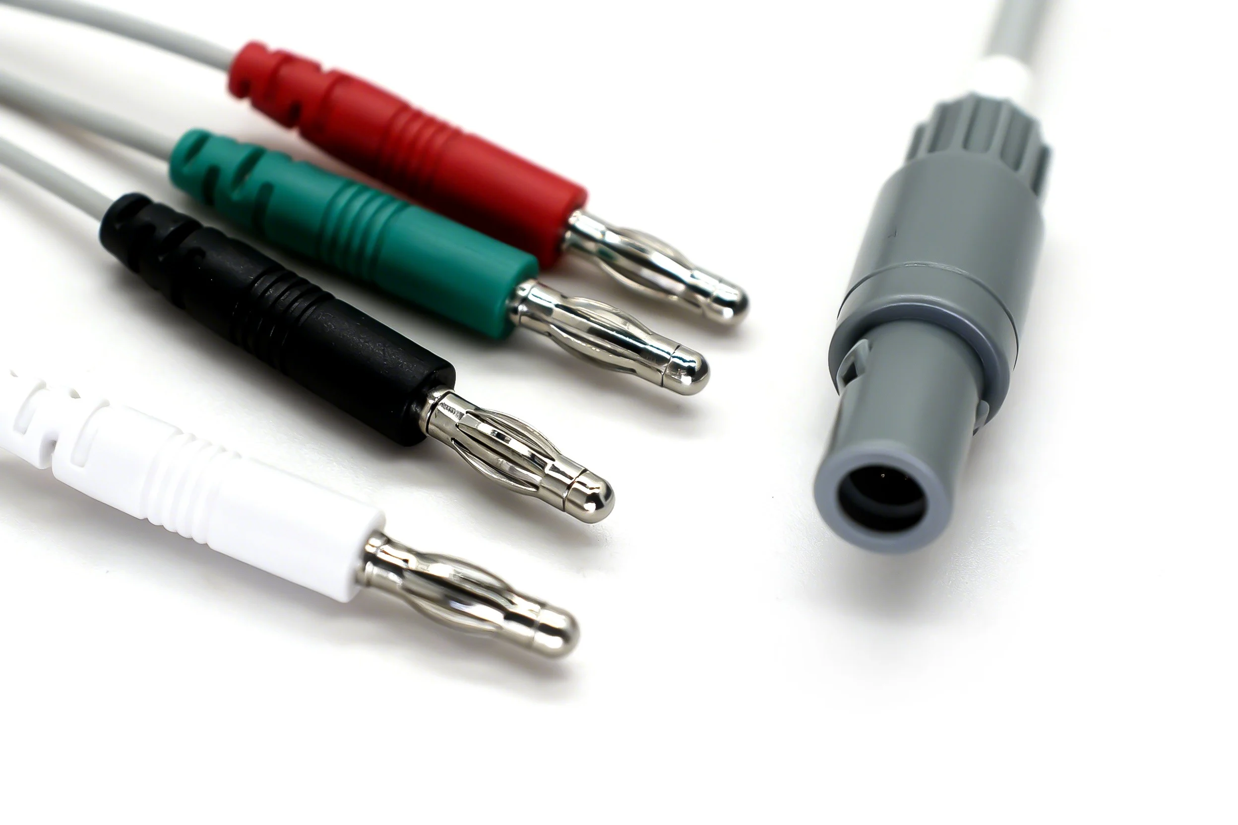 Questo cavo per uso medico è progettato per una connettività affidabile tra dispositivi medici e moduli di interfaccia di segnale. L'assemblaggio comprende a Connettore stile Lemo, un Connettore medico SR, e quattro connettori a banana da 4 mm, offrendo prestazioni elettriche stabili e durata a lungo termine.