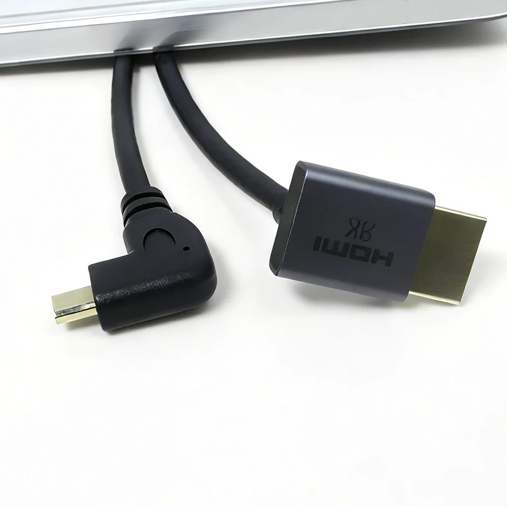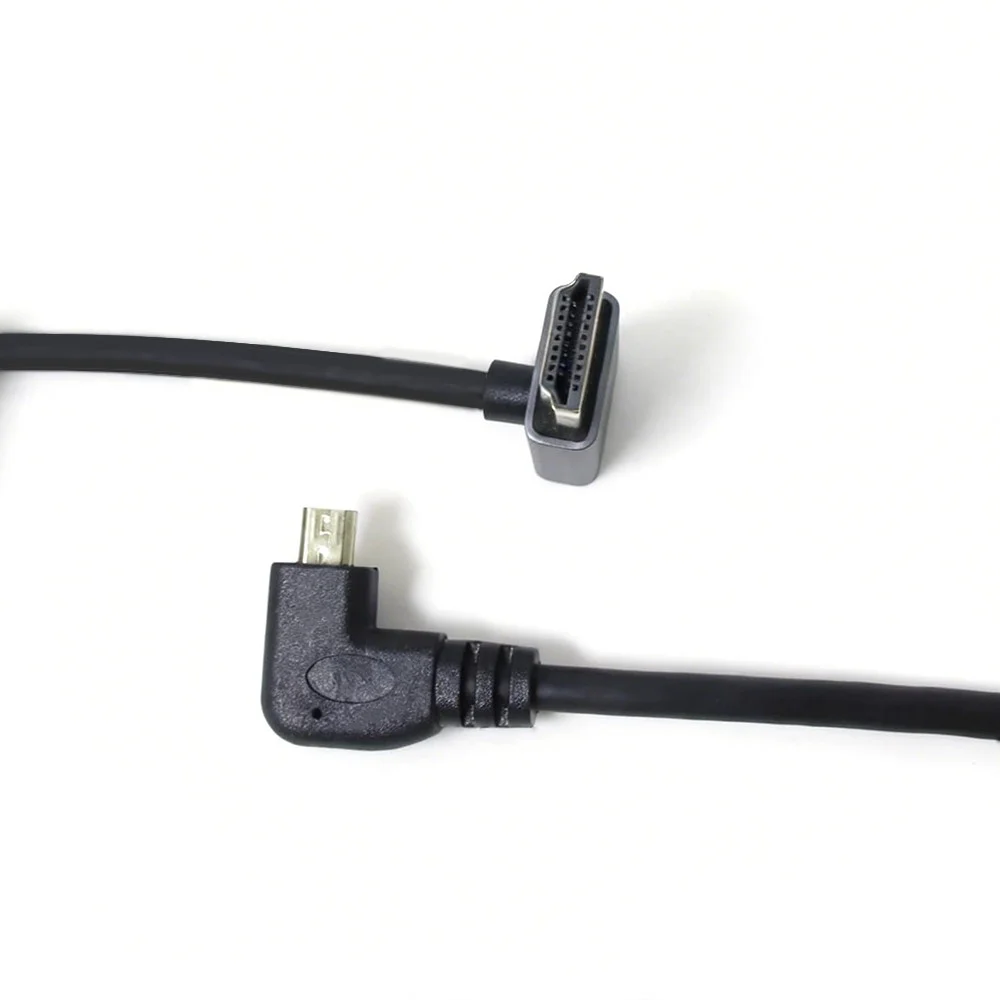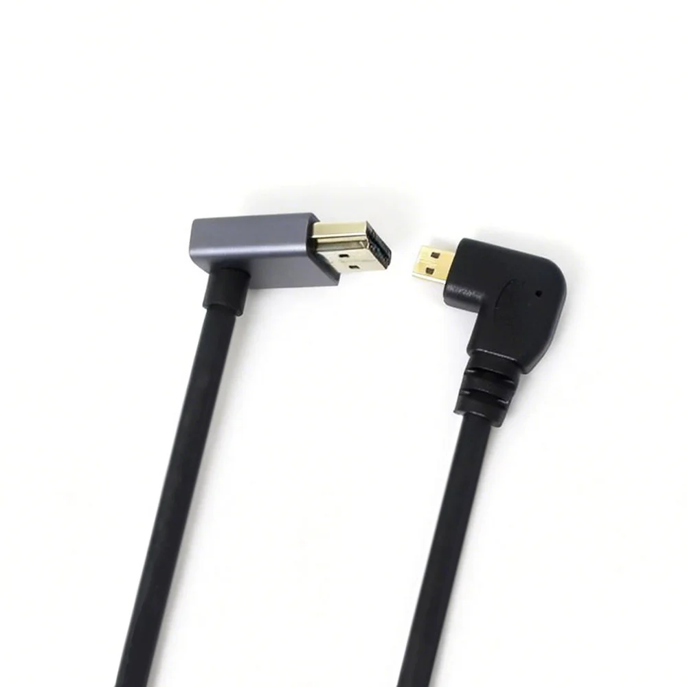 Questo Cavo Micro HDMI maschio con angolo di 90° a sinistra a HDMI maschio con angolo di 90° verso il basso è appositamente progettato per applicazioni professionali in cui lo spazio è limitato e il passaggio dei cavi è fondamentale. Il design del doppio connettore ad angolo retto riduce efficacemente lo stress da flessione, protegge le porte del dispositivo da eventuali danni e garantisce una connessione più affidabile e duratura rispetto ai cavi diritti standard.