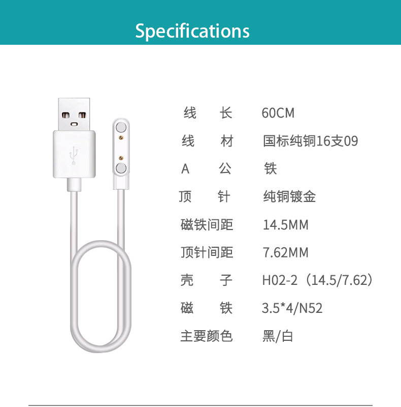 Questo caricabatterie per smartwatch magnetico a 2 pin da 7,62 mm compatibile con smartwatch GS10 FA58 MW08 GT1 GT2 GT3 HW11 A36 I5 S18 Q12 W40 ZM08 TF13 QQ21