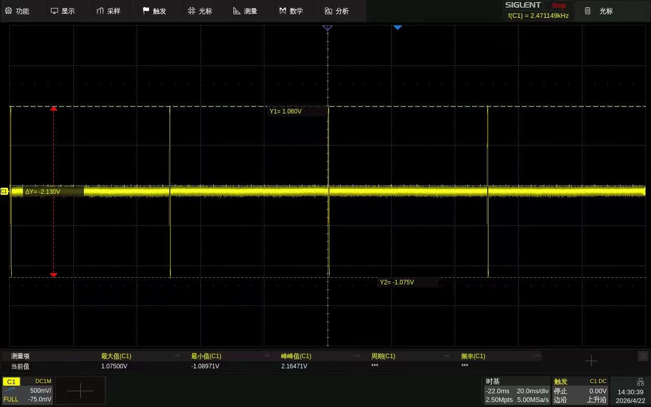 Werkelijk gemeten spanning: 1,075 V tot -1,0897 V